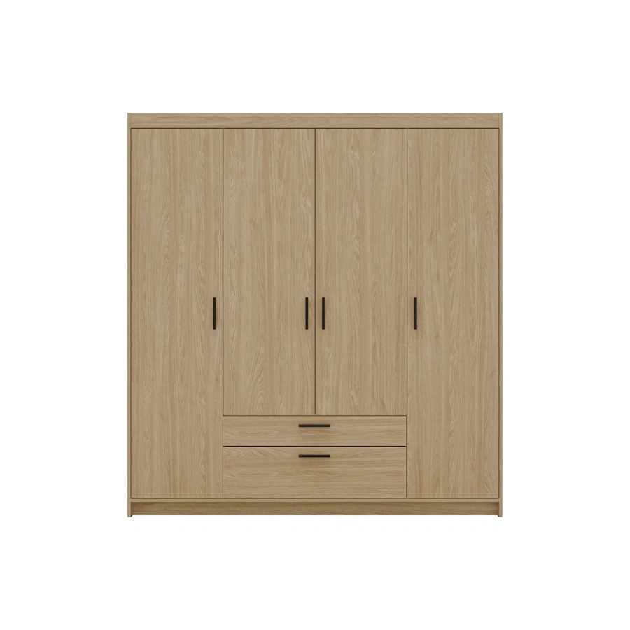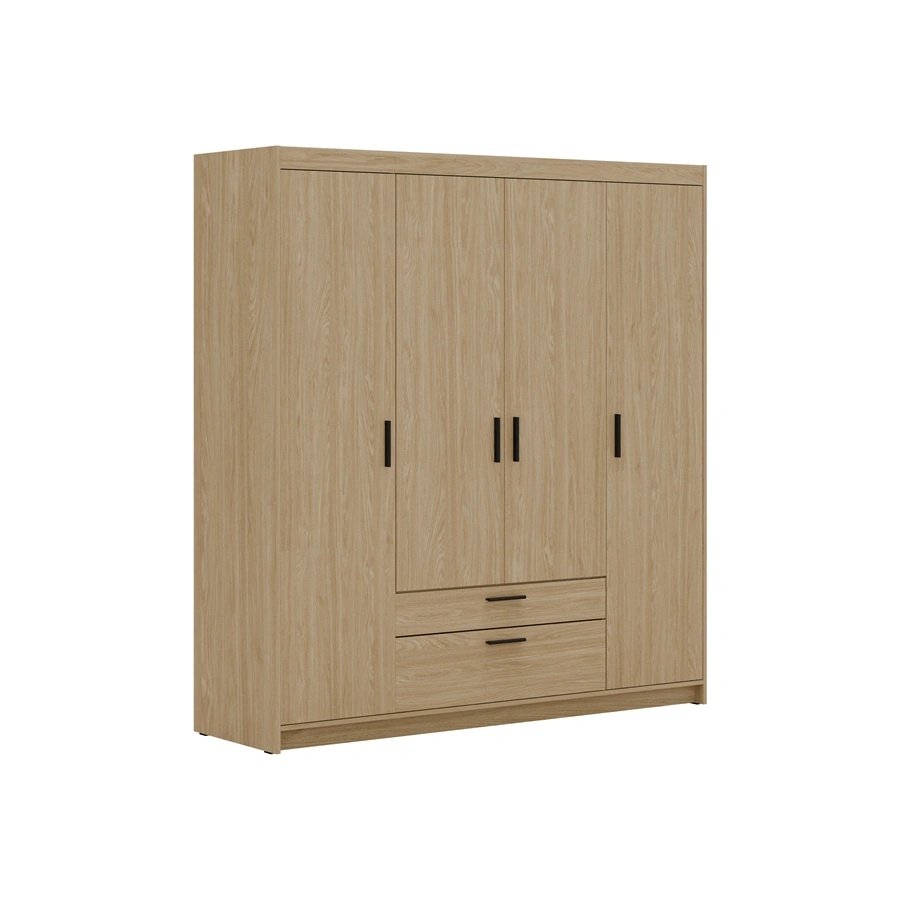 Szafa jest skonstruowana z 4 drzwi oraz 2 szuflad. Szafa gwarantuje komfortowe i bezproblemowe korzystanie oraz trwałość całego mebla przez wiele lat użytkowania. Połączenie dębu w naturalnym odcieniu z czarnymi uchwytami sprawia, że szafa na ubrania z powodzeniem sprawdzi się jako szafa do sypialni, jako szafa do przedpokoju lub szafa do pokoju dziecięcego. Szafy modułowe Rene będą również świetnym wyborem do pokoju niemowlęcego. Doskonale sprawdzi się także w roli garderoby do przedpokoju.