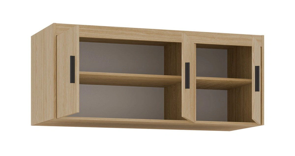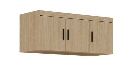 Nadstawka szafy posiada drzwi uchylne o wykończeniu matowym. Mebel skonstruowany jest z 3 drzwi. Nadstawka wykonana została z wysokiej jakości płyty laminowanej, która charakteryzuje się wysoką odpornością na wpływ czynników zewnętrznych takich jak obicia, uderzenia i niefortunne zadrapania. Wymiary mebla są optymalne. Szerokość 133 cm, wysokość 55 cm oraz głębokość 53 cm.