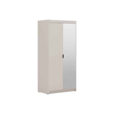Szafa jest skonstruowana z 2 drzwi uchylnych. Szafa gwarantuje komfortowe i bezproblemowe korzystanie oraz trwałość całego mebla przez wiele lat użytkowania. Połączenie beżu w piaskowym odcieniu z czarnymi uchwytami sprawia, że szafa na ubrania z powodzeniem sprawdzi się jako szafa do sypialni, jako szafa do przedpokoju lub szafa do pokoju dziecięcego. Szafy z lustrem Rene będą również świetnym wyborem do pokoju niemowlęcego. Doskonale sprawdzi się także w roli garderoby do przedpokoju.