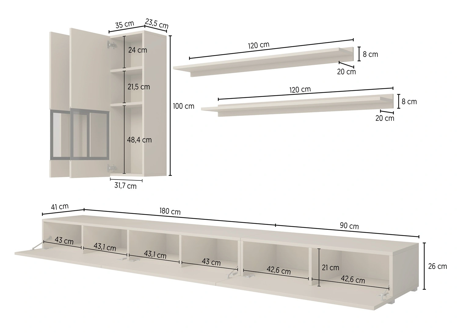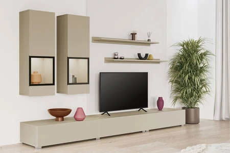 Przedstawiamy meblościankę Baros w wykończeniu beżowym, która stanowi idealne połączenie nowoczesnego designu i funkcjonalności. Ta elegancka meblościanka została zaprojektowana z myślą o nowoczesnych wnętrzach, gdzie minimalizm i styl są kluczowymi elementami wystroju. Meblościanka Baros składa się z kilku modułów, w tym wiszących szafek, półek oraz szafki RTV, oferując mnóstwo miejsca na przechowywanie sprzętu elektronicznego, dekoracji oraz innych niezbędnych przedmiotów. Modny beżowy kolor nadaje meblu industrialnego charakteru, który doda wnętrzu unikalnego i nowoczesnego wyglądu.