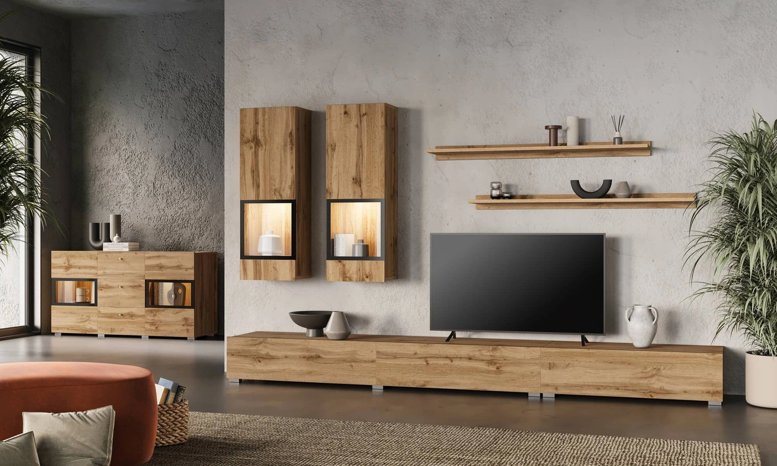 Zestaw mebli do salonu Baros w kolorze dąb wotan