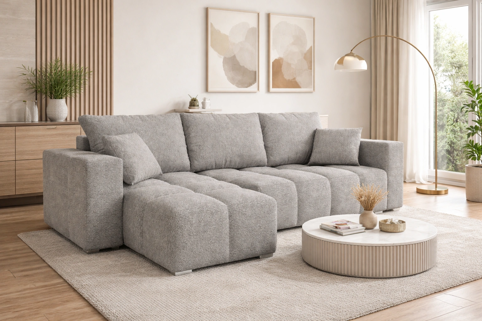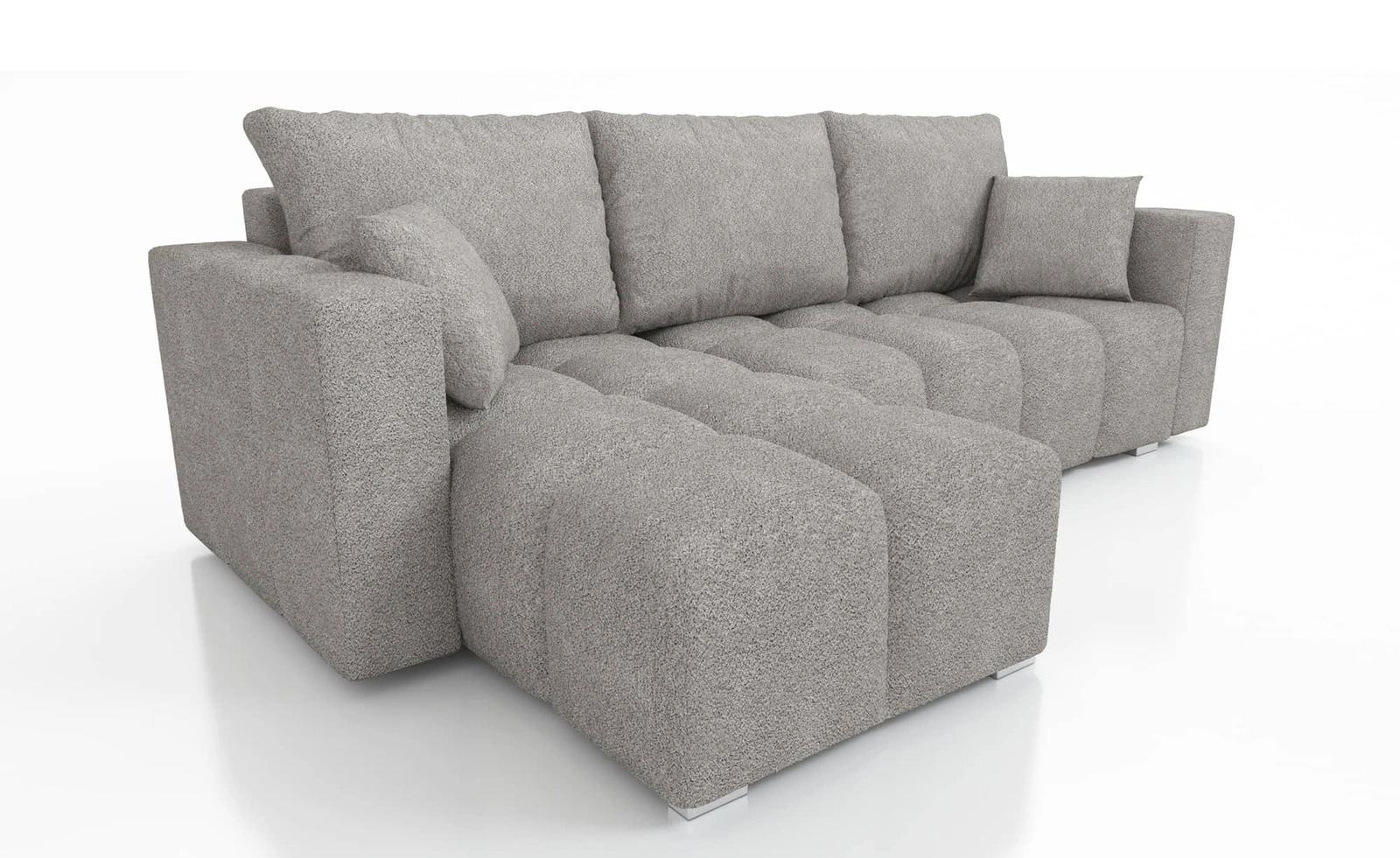 Narożnik z funkcją spania Linco szary uniwersalny narożnik do salonu o nowoczesnym designie wykonany z tkaniny typu boucle
