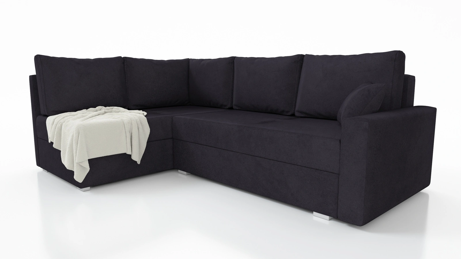 Narożnik z funkcją spania Nofi czarny lewostronny nowoczesny design prosta i stylowa bryła wpisująca się w każdą aranżację