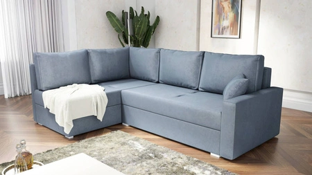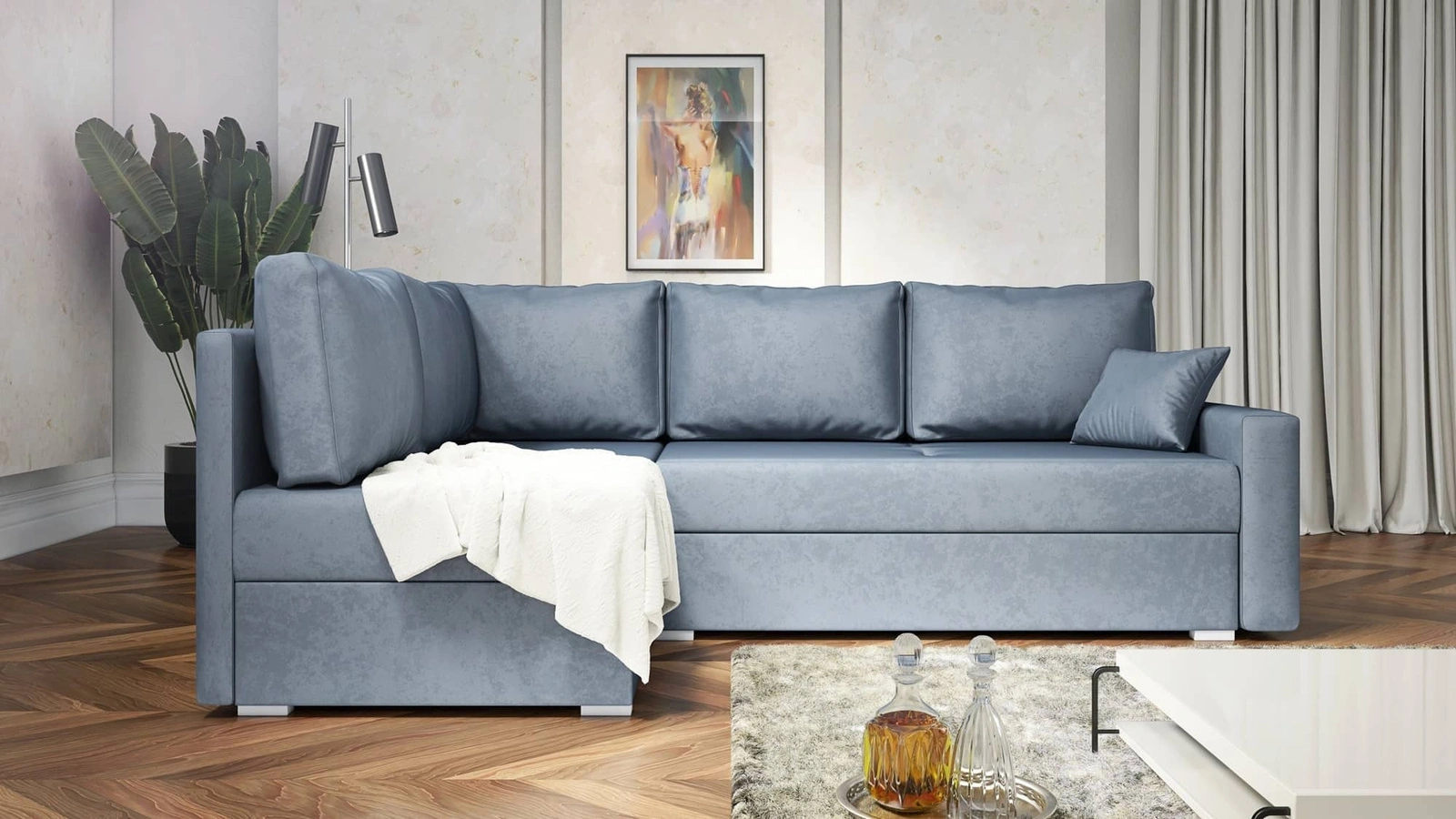 Narożnik z funkcją spania Nofi wyróżnia się niezwykłą uniwersalnością, dzięki czemu doskonale sprawdzi się w wielu aranżacjach wnętrz. Elastyczność bryły oraz bogata gama kolorystyczna pozwoli na dopasowanie narożnika do różnych stylów aranżacyjnych, od klasycznych, po nowoczesne. Narożnik w całości pokryty został tkaniną typu plusz Paros 06. Narożnik charakteryzuje się nietuzinkowym wyglądem podkreślonym prostym kształtem, miękkim i wygodnym siedziskiem oraz wysoką jakością wykonania. Gustowne poduchy oparciowe zapewnią jeszcze większy komfort i wygodę użytkowania tego niezwykle modernistycznego narożnika.