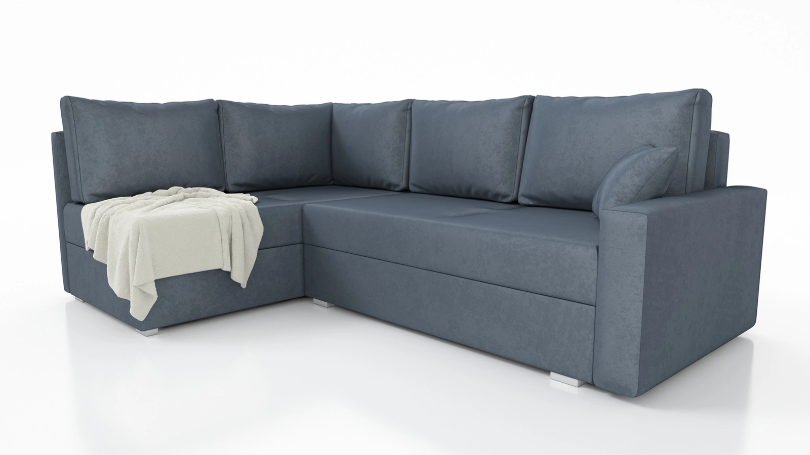Dzięki swoim wymiarom oraz szerokiej funkcjonalności narożnik z funkcją spania świetnie sprawdzi się jako narożnik do pokoju dziennego lub jako narożnik rozkładany do pokoju gościnnego. Narożnik z funkcja spania to także świetna alternatywa łóżka w pokoju młodzieżowym. Szerokość narożnika 228 cm, wysokość 84 cm oraz głębokość 145 cm. Powierzchnia spania narożnika wynosi 137x201 cm. Wysokość siedziska mebla to 41 cm, a wysokość oparcia wynosi 48 cm. Sprężyny faliste oraz pianka poliuretanowa T28 to materiał, z którego wykonane zostało siedzisko narożnika. Miękkie poduchy oparciowe zapewnią wysoki komfort podczas codziennego odpoczynku, który docenisz Ty a także goście, którzy zasiądą na tym wyjątkowym narożniku.