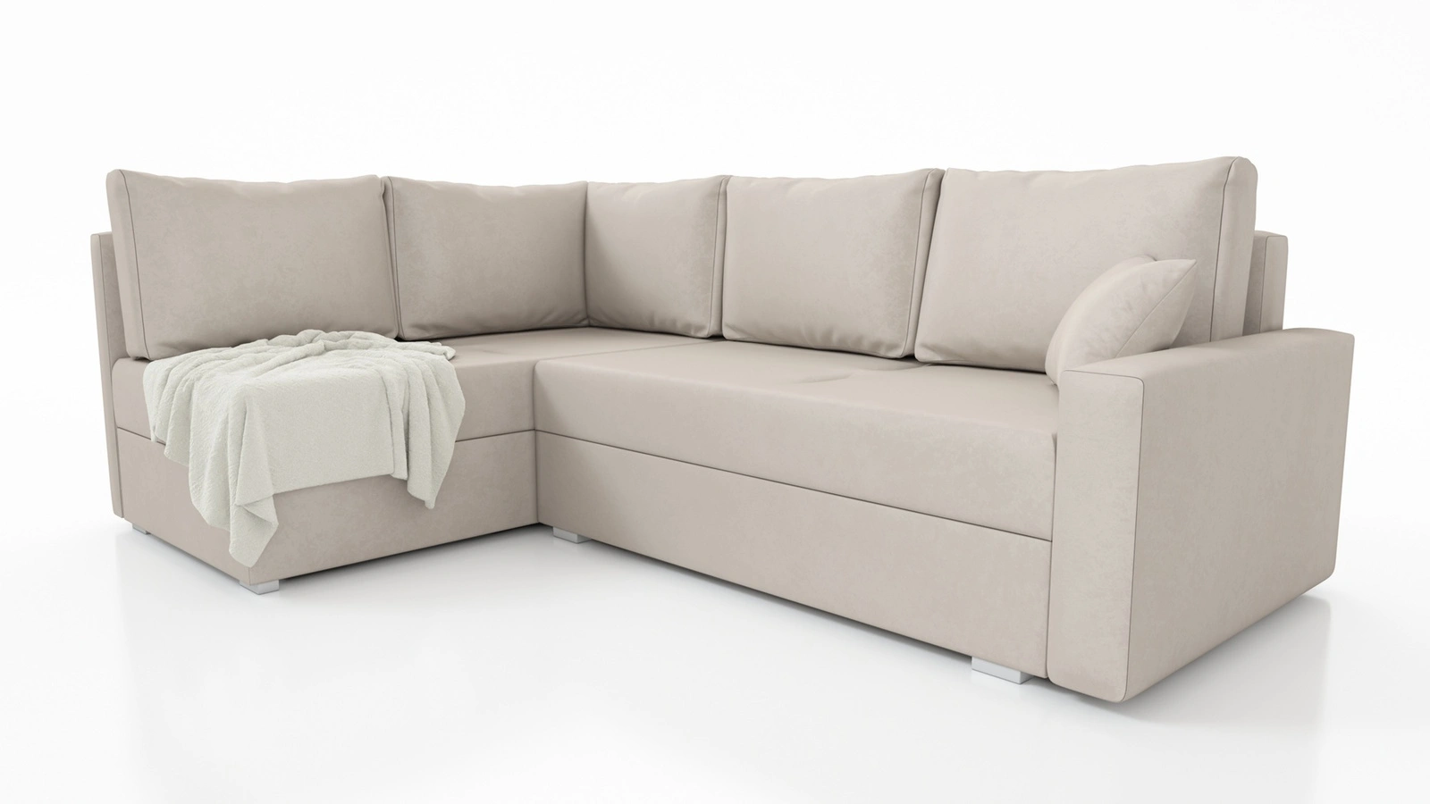 Narożnik z funkcją spania Nofi jasny beż lewostronny nowoczesny design prosta i stylowa bryła wpisująca się w każdą aranżację