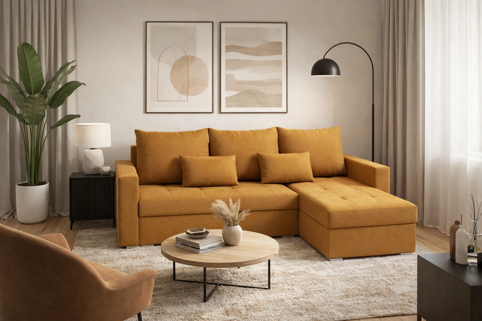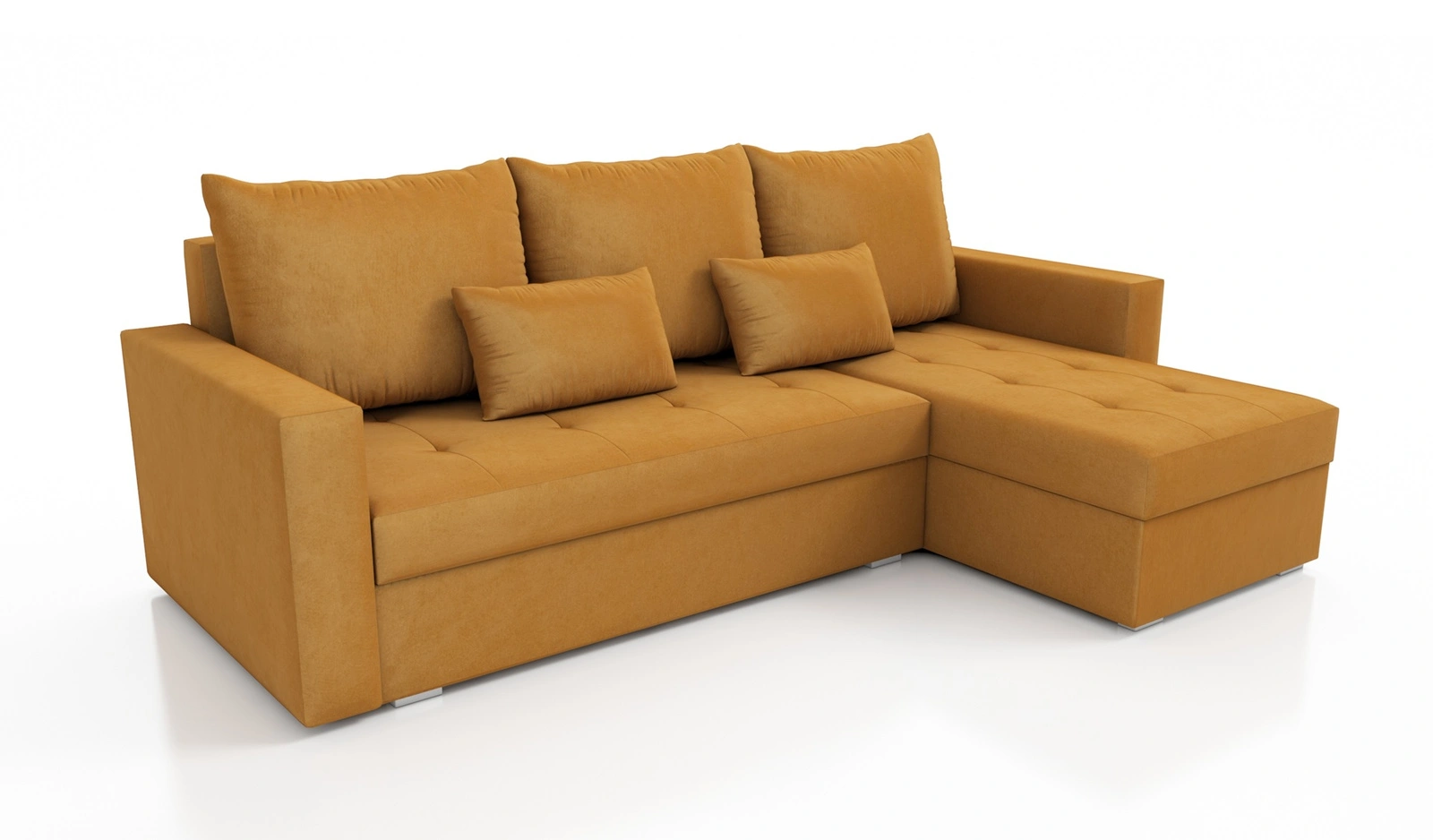 Narożnik Fasti Bis w kolorze musztardowym to idealne rozwiązanie do pokoju dziennego, które dopasuje się do każdego wnętrza.