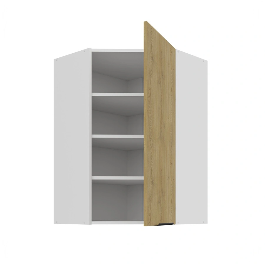 Szafka kuchenna narożna wisząca Cremona w kolorze biały / dąb cremona należy do kategorii mebli kuchennych modułowych, z których można utworzyć dowolne zestawy.