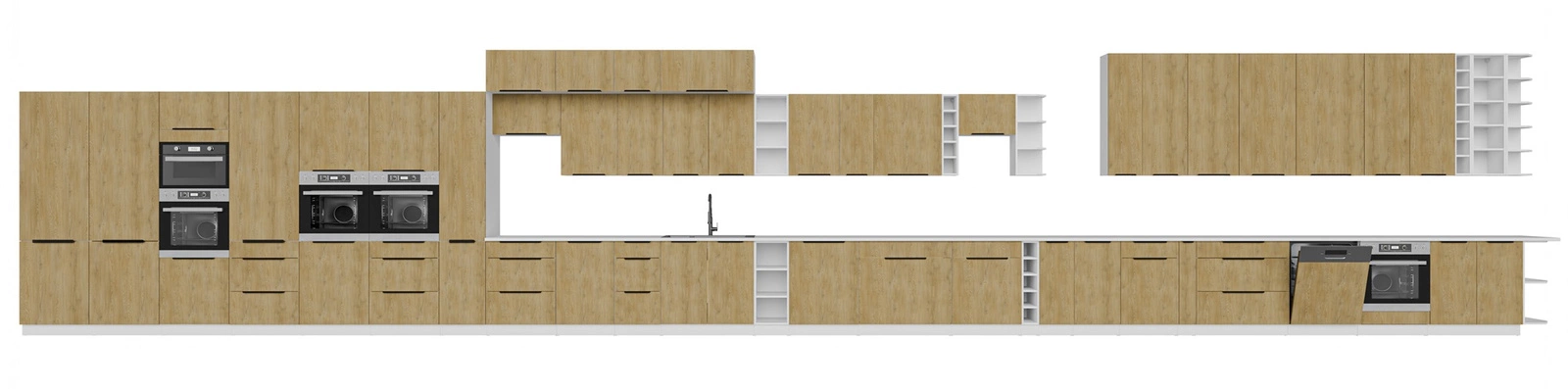 Korpus i fronty szafki kuchennej są wykonane z wysokiej jakości płyty laminowanej o grubości 16 mm. Zaletą tego rodzaju materiałów jest wysoka odporność na wpływ zewnętrznych czynników takich jak para wodna, wysoka temperatura, wilgoć, rozlane ciecze. Użyty materiał jest także odporny na przypadkowe uszkodzenia. Stylowym dopełnieniem frontów szafki kuchennej jest czarny, metalowy uchwyt krawędziowy, który poza swoją podstawową funkcją podkreśla również nowoczesny design szafki.