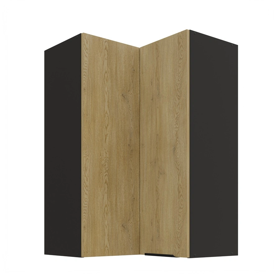 Szafka kuchenna narożna wisząca Crotone w kolorze czarny / dąb cremona należy do kategorii mebli kuchennych modułowych, z których można utworzyć dowolne zestawy.