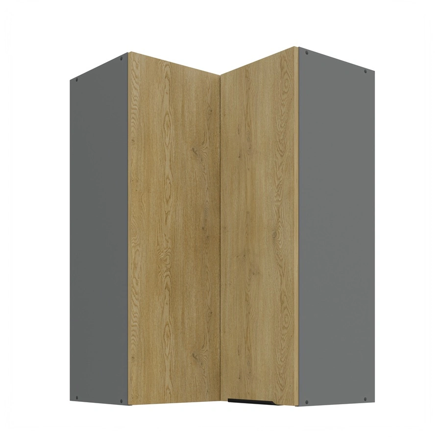 Szafka kuchenna narożna wisząca Corsico w kolorze antracyt / dąb cremona należy do kategorii mebli kuchennych modułowych, z których można utworzyć dowolne zestawy.