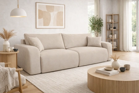 Kanapa rozkładana Fiesta w kolorze jasny beżowy to atrakcyjny mebel, który z łatwością odnajdzie się w każdym pomieszczeniu Twojego domu.