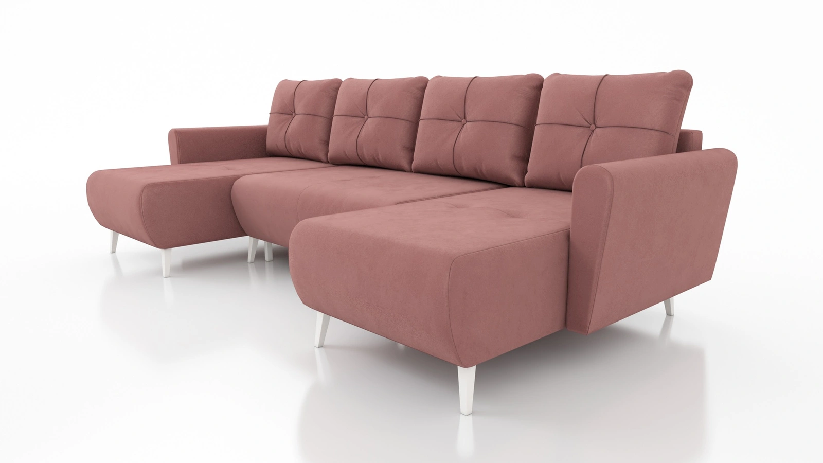 Narożnik z funkcją spania Felicie U charakteryzuje się połączeniem stylu tradycyjnego oraz skandynawskiego. Konstrukcja narożnika w całości została pokryta tkaniną typu plusz Kronos 29, gwarantując najwyższy komfort i funkcjonalność podczas codziennego wypoczynku w salonie, pokoju dziennym, pokoju gościnnym czy innym pomieszczeniu, w którym planujesz ustawić ten niezwykle nowoczesny narożnik. Stylowa bryła została wyposażona w zaoblone boczki i wysokie, smukłe nogi nadając wizualnej lekkości całej konstrukcji. Oparcie z dużymi poduchami zapewni jeszcze większy komfort i wygodę użytkowania narożnika Felicie U.