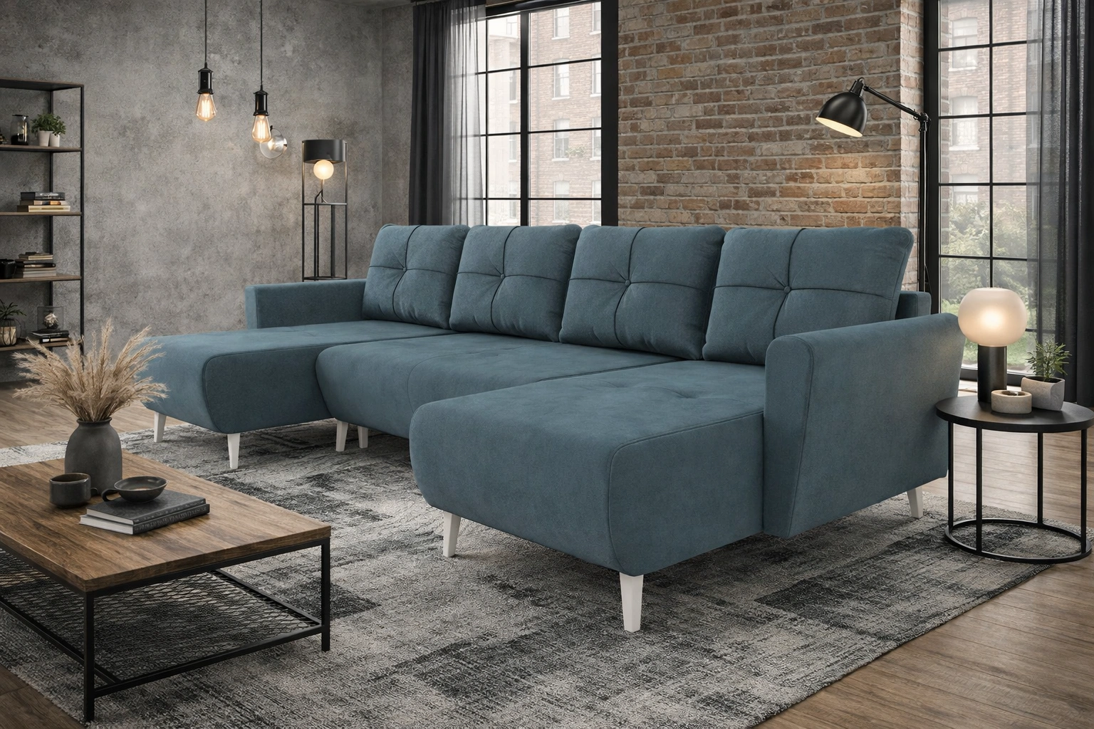 Narożnik z funkcją spania Felicie U ciemny szary stylowy i elegancki narożnik wpisujący się w aranżacje w stylu skandynawskim