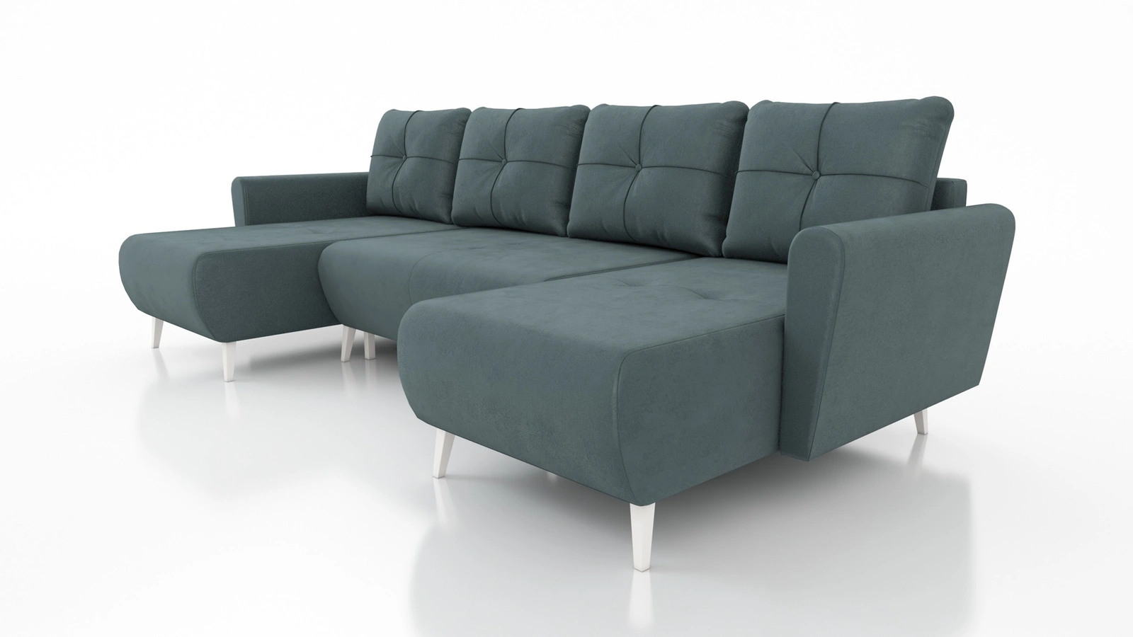 Narożnik z funkcją spania Felicie U charakteryzuje się połączeniem stylu tradycyjnego oraz skandynawskiego. Konstrukcja narożnika w całości została pokryta tkaniną typu plusz Paros 06, gwarantując najwyższy komfort i funkcjonalność podczas codziennego wypoczynku w salonie, pokoju dziennym, pokoju gościnnym czy innym pomieszczeniu, w którym planujesz ustawić ten niezwykle nowoczesny narożnik. Stylowa bryła została wyposażona w zaoblone boczki i wysokie, smukłe nogi nadając wizualnej lekkości całej konstrukcji. Oparcie z dużymi poduchami zapewni jeszcze większy komfort i wygodę użytkowania narożnika Felicie U.