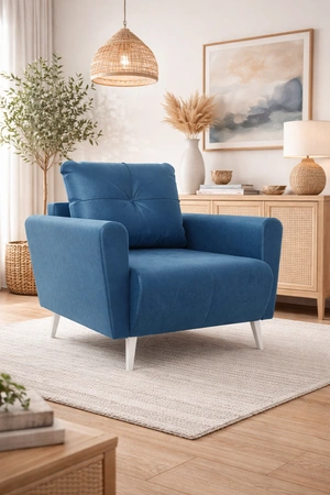 Fotel Felice w kolorze niebieskim to stylowy mebel, który odmieni wygląd każdego wnętrza.
