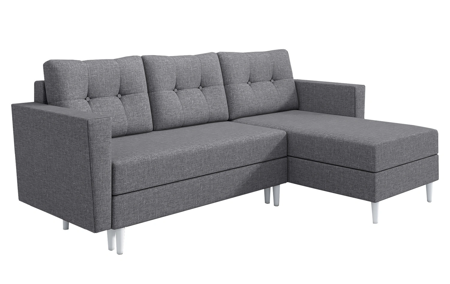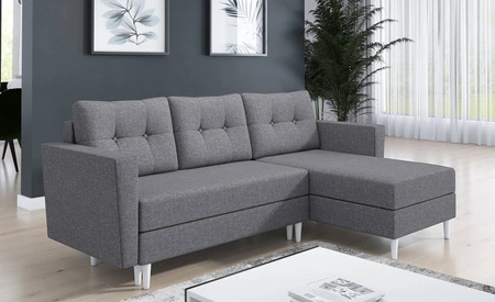 Narożnik z funkcją spania Telsze szary uniwersalny elegancki narożnik w skandynawskiej formie duży pojemnik na pościel