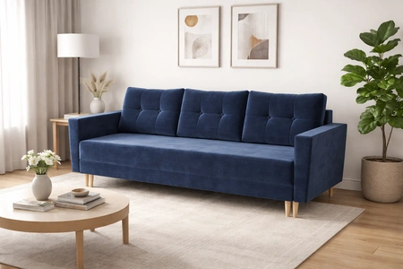 Kanapa rozkładana Telsze w kolorze niebieskim to stylowa bryła, która świetnie dopasuje się do każdej aranżacji w Twoim domu.