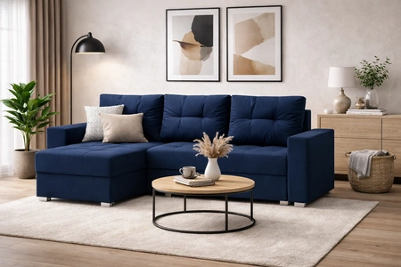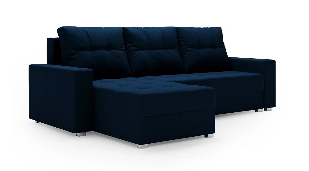 Narożnik z funkcją spania Pablos granatowy uniwersalny narożnik z pojemnikiem na pościel dekoracyjne pikowania na siedzisku