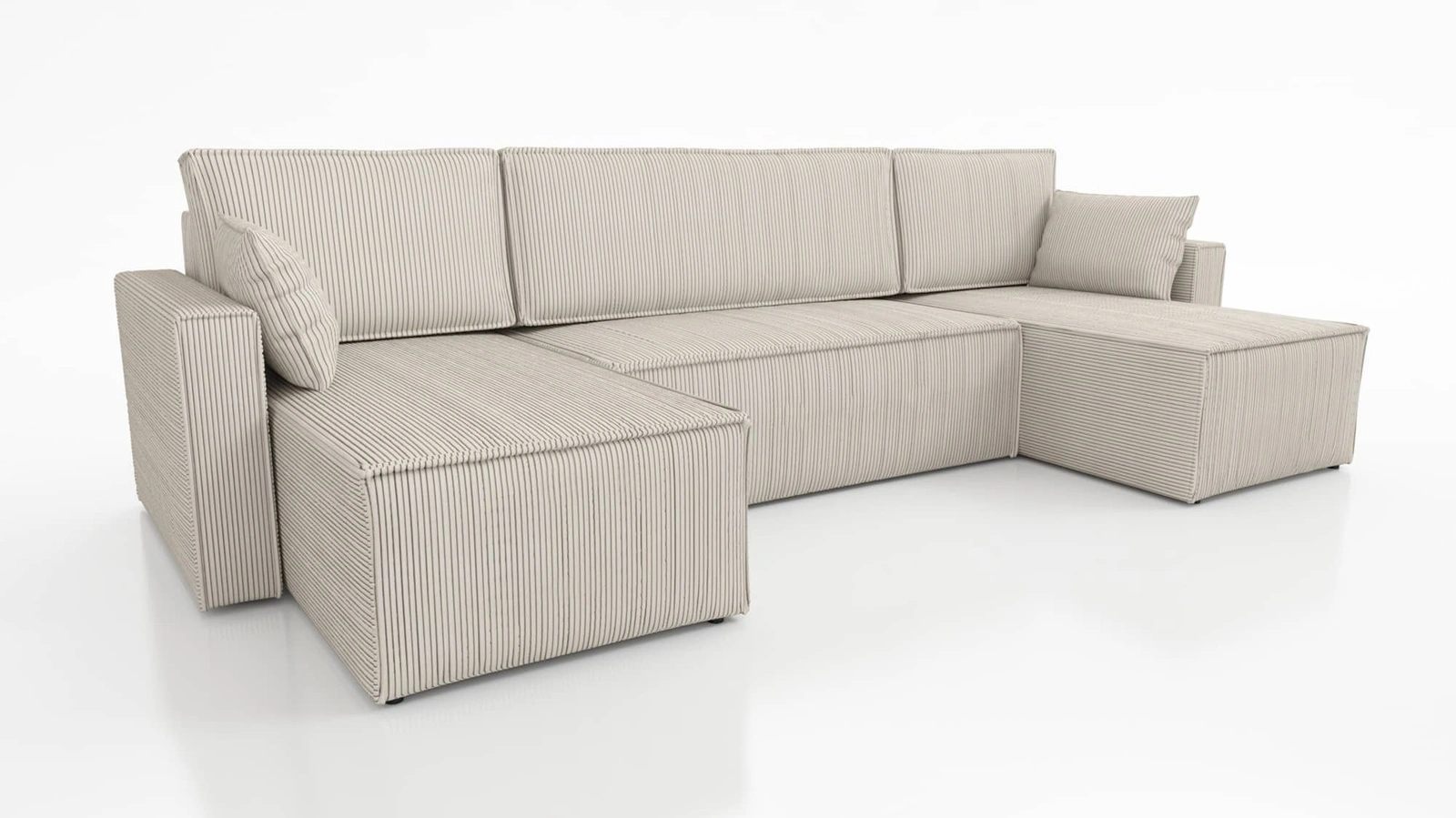 Trójwymiarowa sztruksowa tkanina o wyrazistych i grubych prążkach nadaje szczególnego charakteru oraz wyjątkowej urody. Tkanina jest bardzo miękka, a przy tym mocna i wytrzymała. Tkanina obiciowa Poso jest odporna na ścieranie, a także łatwa do utrzymania w czystości. Dzięki temu narożnik rozkładany Rebenes U przez długi czas będzie wyglądał estetycznie i elegancko. Narożnik z funkcją spania codziennego wykonany został z wysokiej jakości materiałów, które charakteryzują się odpornością na wpływ czynników zewnętrznych takich jak obicia mebla oraz różnego typu uderzenia.