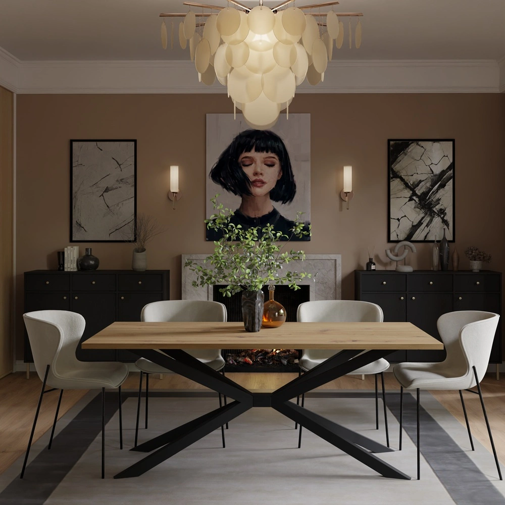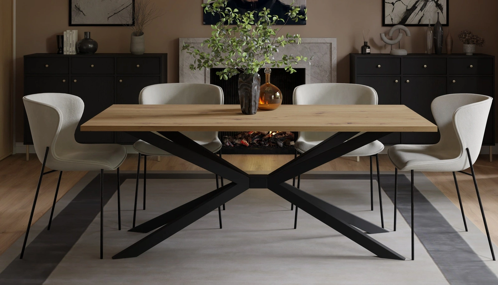 Metalowe nogi w połączeniu z prostym blatem sprawia, że całość prezentuje się niezwykle stylowo i elegancko. Dzięki nowoczesnej formie oraz uniwersalności stół idealnie sprawdzi się jako stół do salonu, stół do kuchni lub stół do jadalni. Stół industrialny zachwyca swoją formą i designem, wpisując się w każde wnętrze, niezależnie od jego stylu.