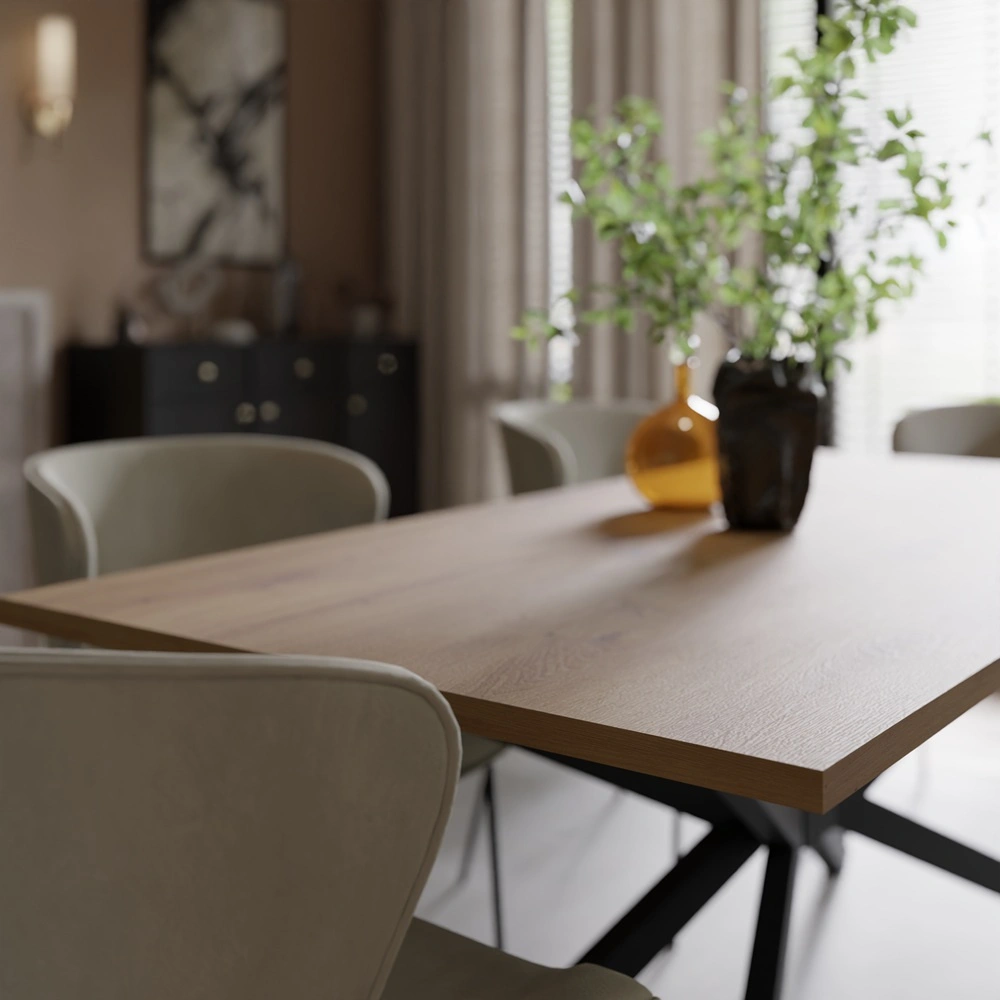 Stoły z kolekcji Tennes charakteryzują się połączeniem skandynawskiej harmonii z nowoczesną funkcjonalnością. Subtelna estetyka, jasność formy, lekkość wizualna oraz uniwersalny charakter tworzą wyjątkową przestrzeń do spotkań i codziennych chwil. Minimalistyczny blat o czystej, spokojnej linii pozwala dopasować stół do różnych aranżacji wnętrz. Nowoczesna podstawa nadaje całości lekkości i stabilności tworząc spójną formę, która nie dominuje przestrzeni, lecz naturalnie ją dopełnia. Ten niezwykle modny stół stanie się centralnym punktem pomieszczenia podkreślając nowoczesny styl aranżacji.
