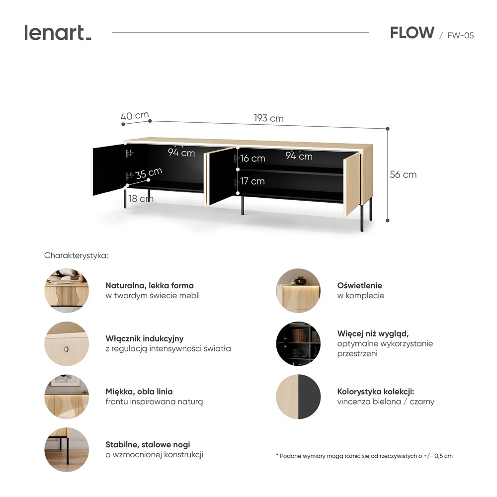 Szafka RTV 193 cm Flow to wyjątkowa propozycja mebli o niebanalnej estetyce.