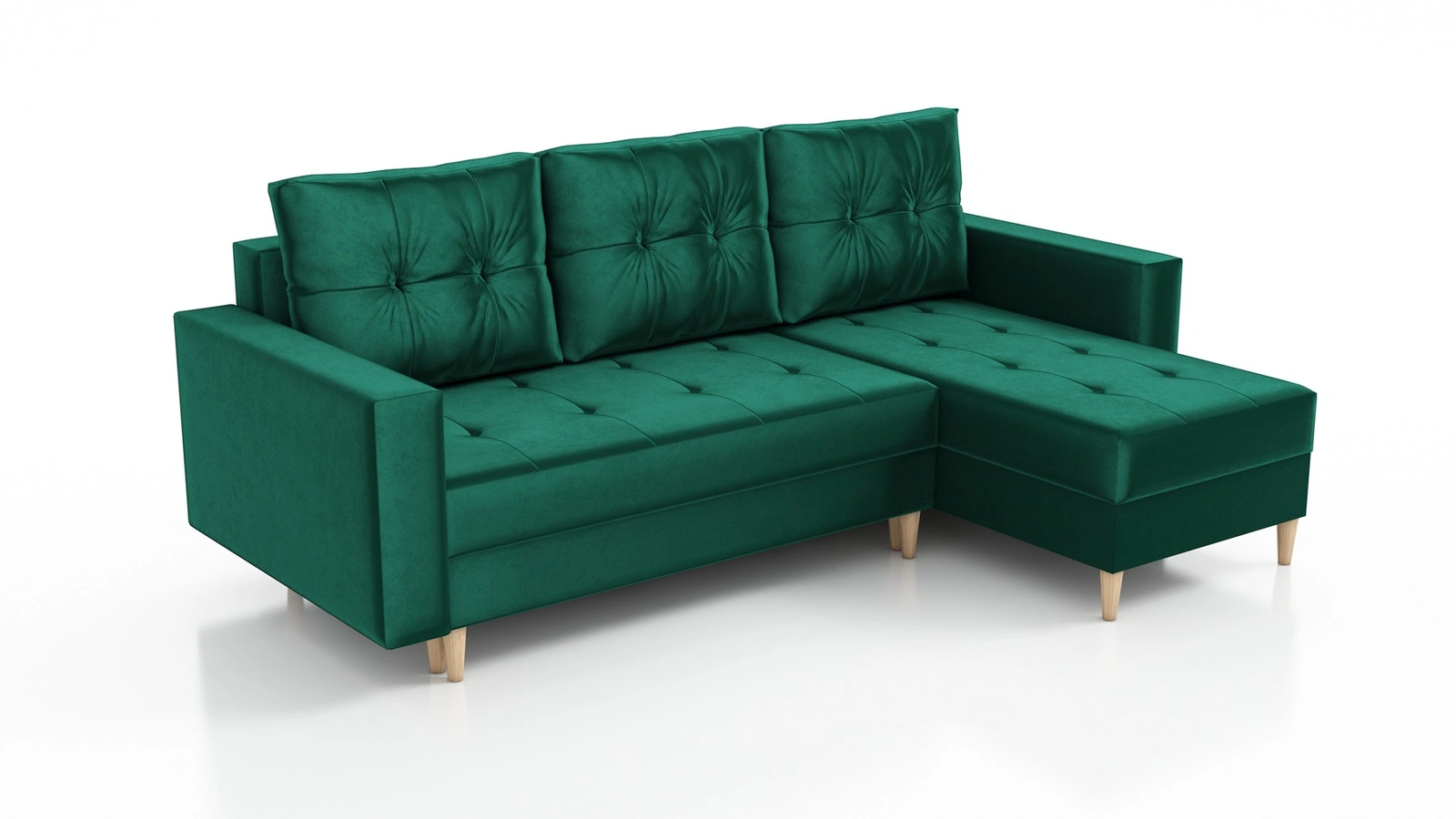 Narożnik z funkcją spania Vaso butelkowa zieleń uniwersalny wygodny narożnik do salonu w stylu skandynawskim duży pojemnik na pościel