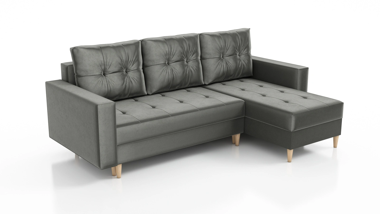 Narożnik z funkcją spania Vaso szary uniwersalny wygodny narożnik do salonu w stylu skandynawskim duży pojemnik na pościel