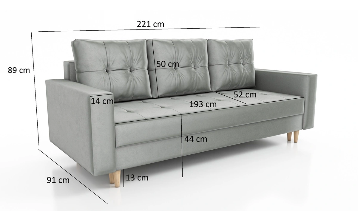 Kanapa z funkcją spania z kolekcji Vaso charakteryzuje się połączeniem stylu tradycyjnego oraz skandynawskiego. Konstrukcja sofy w całości została pokryta tkaniną typu plusz Kronos 19, gwarantując najwyższy komfort i funkcjonalność podczas codziennego wypoczynku w salonie, pokoju dziennym, pokoju gościnnym czy innym pomieszczeniu, w którym planujesz ustawić tą niezwykle nowoczesną kanapę. Stylowa bryła została wyposażona w komfortowe, szerokie boczki i wysokie nogi, które nadają wizualnej lekkości całej konstrukcji. Przez swoje niewielkie wymiary kanapa rozkładana sprawdzi się w mniejszych mieszkaniach gdzie oszczędność miejsca jest głównym priorytetem.