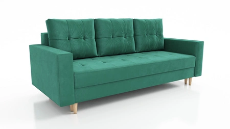Kanapa rozkładana Vaso butelkowa zieleń wygodna sofa do salonu w stylu skandynawskim drewniane wysokie nogi pojemnik na pościel