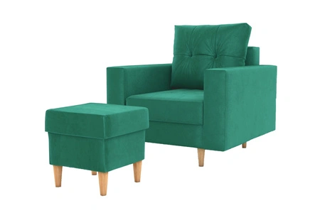Fotel z podnóżkiem Vaso butelkowa zieleń wygodny fotel do salonu w stylu skandynawskim miękkie siedzisko wysokie drewniane nogi