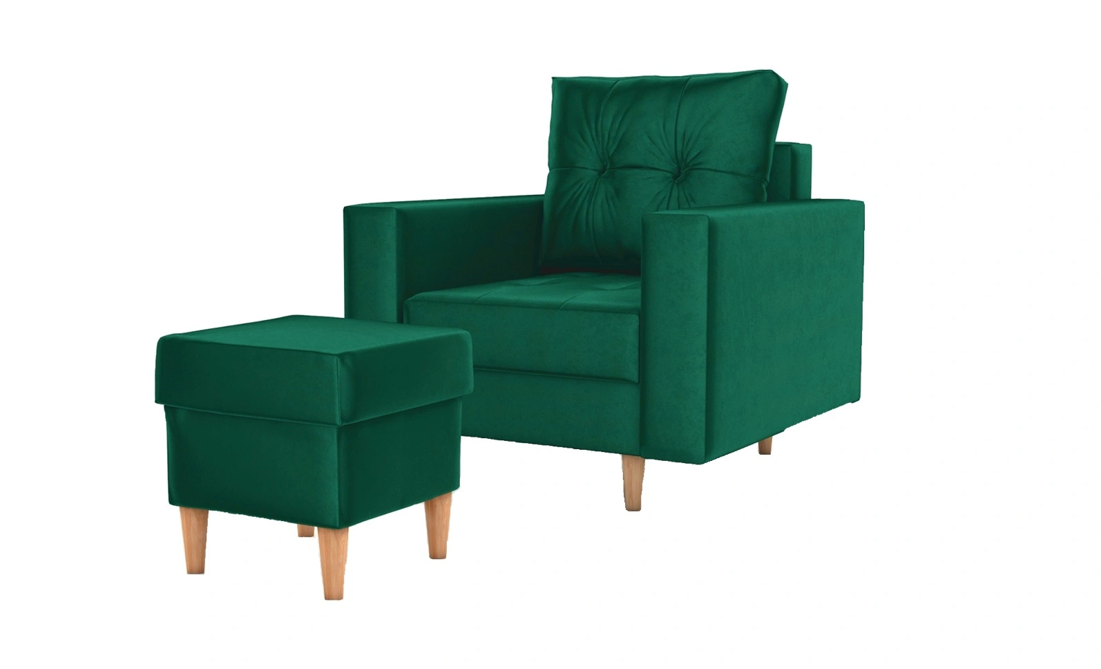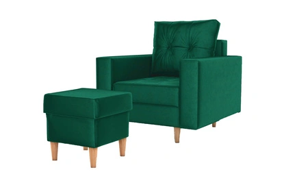 Fotel z podnóżkiem Vaso butelkowa zieleń wygodny fotel do salonu tkanina velvet miękkie siedzisko wysokie drewniane nogi