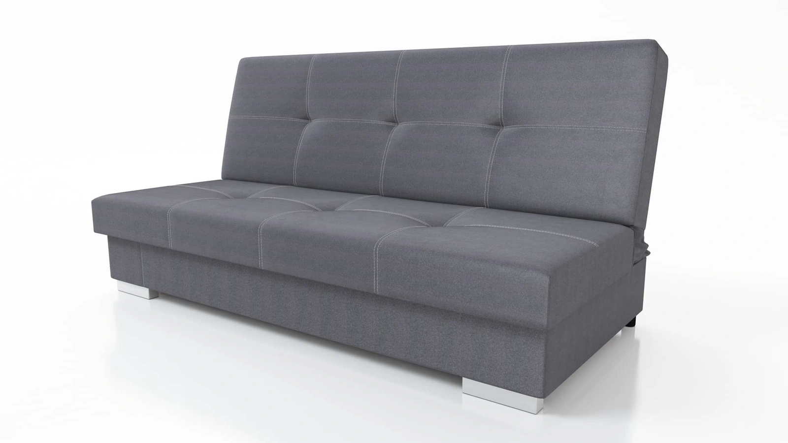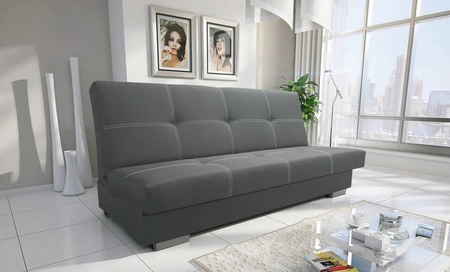 Rozkładanie wersalki jest bardzo proste i nie wymaga użycia dużej siły. Wszystko dzięki zastosowaniu mechanizmu klik-klak, który charakteryzuje się prostą budową i długą żywotnością. Powierzchnia spania kanapy wynosi 119x195 cm. Mebel wyposażony został w srebrne nogi w satynowym wykończeniu. Propozycją dla tych, którzy chcą poprawić komfort swojego snu, jest materac nawierzchniowy. Dodatkowa nakładka zniweluje wszystkie nierówności kanapy wynikające z konstrukcji mebla. Tył kanapy jest obity tkaniną zastępczą, która gwarantuje odpowiednie zabezpieczenie mebla.