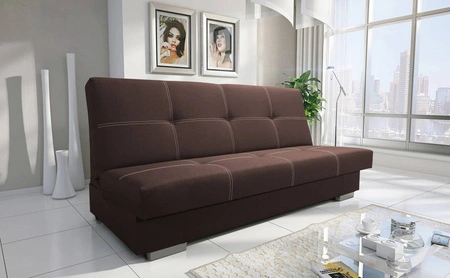 Rozkładanie wersalki jest bardzo proste i nie wymaga użycia dużej siły. Wszystko dzięki zastosowaniu mechanizmu klik-klak, który charakteryzuje się prostą budową i długą żywotnością. Powierzchnia spania kanapy wynosi 119x195 cm. Mebel wyposażony został w srebrne nogi w satynowym wykończeniu. Propozycją dla tych, którzy chcą poprawić komfort swojego snu, jest materac nawierzchniowy. Dodatkowa nakładka zniweluje wszystkie nierówności kanapy wynikające z konstrukcji mebla. Tył kanapy jest obity tkaniną zastępczą, która gwarantuje odpowiednie zabezpieczenie mebla.
