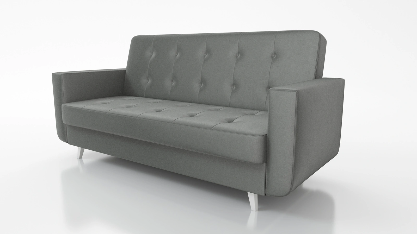 Rozkładanie wersalki jest bardzo proste i nie wymaga użycia dużej siły. Wszystko dzięki zastosowaniu mechanizmu klik-klak, który charakteryzuje się prostą budową i długą żywotnością. Powierzchnia spania wersalki wynosi 120x187 cm. Mebel wyposażony został w wysokie, skośne nogi wykonane z drewna. Propozycją dla tych, którzy chcą poprawić komfort swojego snu, jest materac nawierzchniowy. Dodatkowa nakładka zniweluje wszystkie nierówności kanapy wynikające z konstrukcji mebla. Tapicerowany tył kanapy umożliwia ustawienie mebla w dowolnej części pomieszczenia.