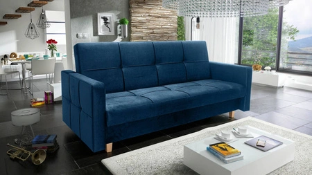 Kanapa rozkładana Sava w kolorze granatowym to stylowa bryła, która świetnie dopasuje się do każdej aranżacji w Twoim domu.