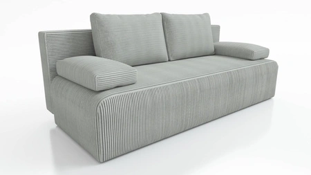 Kanapa rozkładana Zoe jasny szary funkcjonalna sofa o prostym minimalistycznym designie pojemnik na pościel sztruksowa tkanina