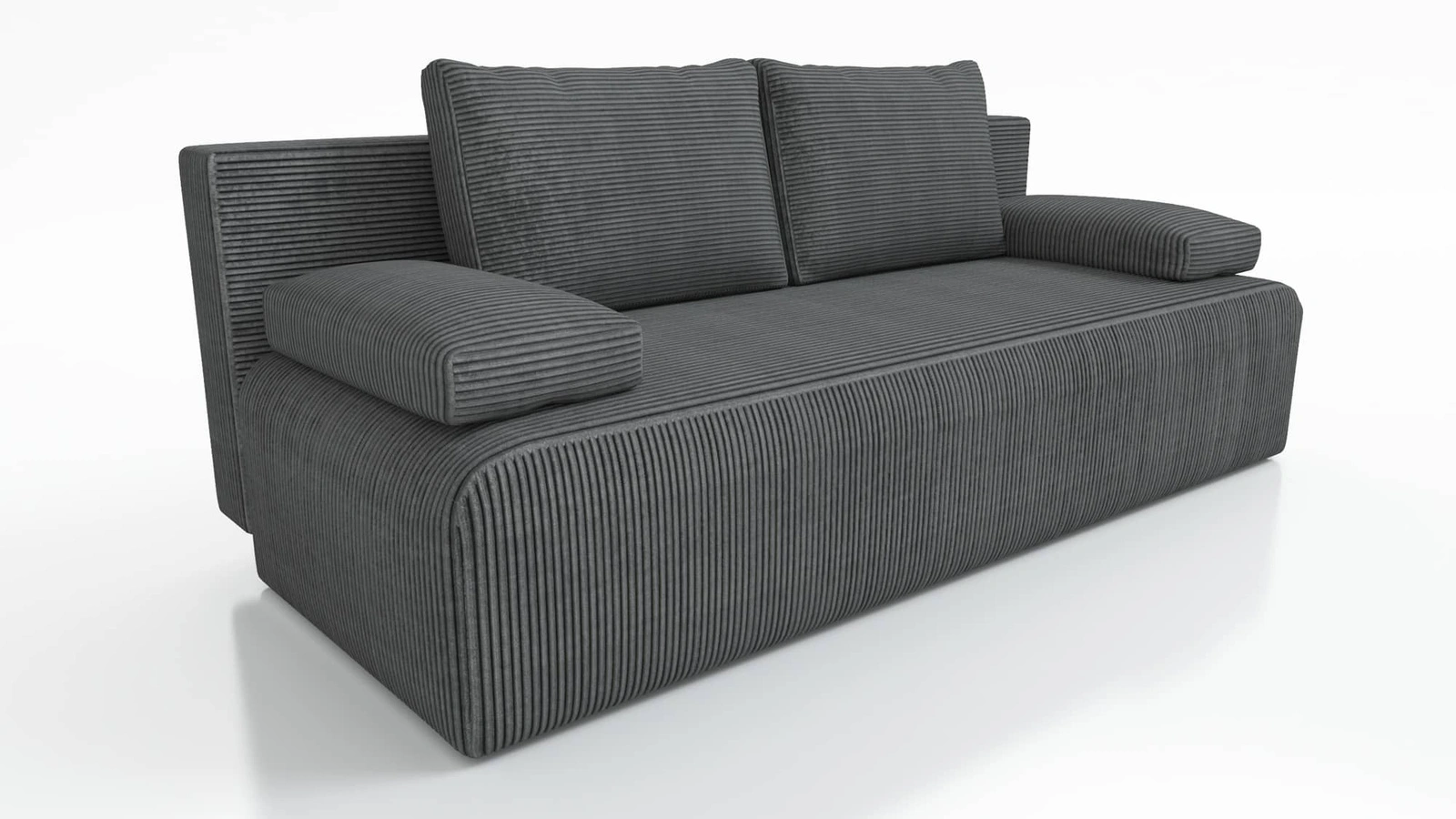 Kanapa rozkładana Zoe szara funkcjonalna sofa o prostym minimalistycznym designie pojemnik na pościel sztruksowa tkanina