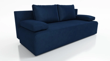 Kanapa rozkładana Zoe granatowa funkcjonalna sofa o prostym minimalistycznym designie pojemnik na pościel miękka tkanina typu plusz