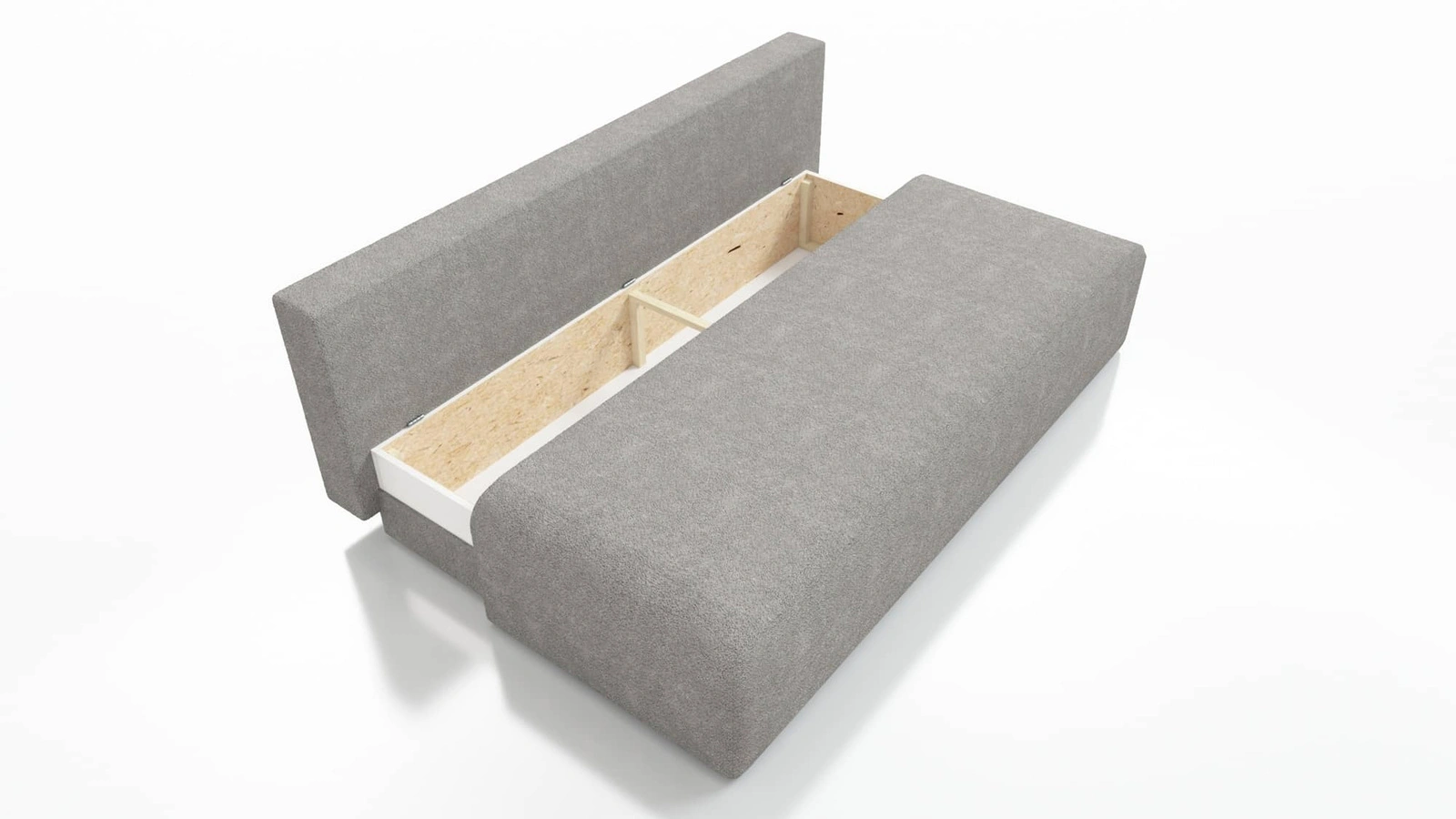 Kanapa Zoe jest wyposażona w pojemnik na pościel, po rozłożeniu zyskujemy miejsce do spania.