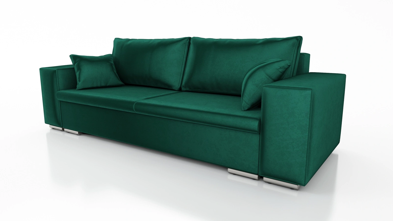 Kanapa rozkładana Rives w kolorze butelkowej zieleni to stylowa bryła, która świetnie dopasuje się do każdej aranżacji w Twoim domu.