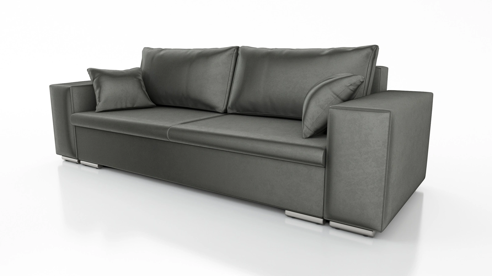 Kanapa z funkcją spania Rives to praktyczny i funkcjonalny mebel o eleganckim designie. Sofa rozkładana sprawi, że codzienny wypoczynek będzie niezwykle komfortowy i przyjemny. Konstrukcja sofy w całości została pokryta tkaniną typu velvet Monolith 92, gwarantując najwyższy komfort i funkcjonalność podczas codziennego wypoczynku w salonie, pokoju dziennym, pokoju gościnnym czy innym pomieszczeniu, w którym planujesz ustawić tą niezwykle nowoczesną kanapę. Stylowa sofa charakteryzuje się obszernym siedziskiem, szerokimi podłokietnikami oraz wysoką jakością wykonania.
