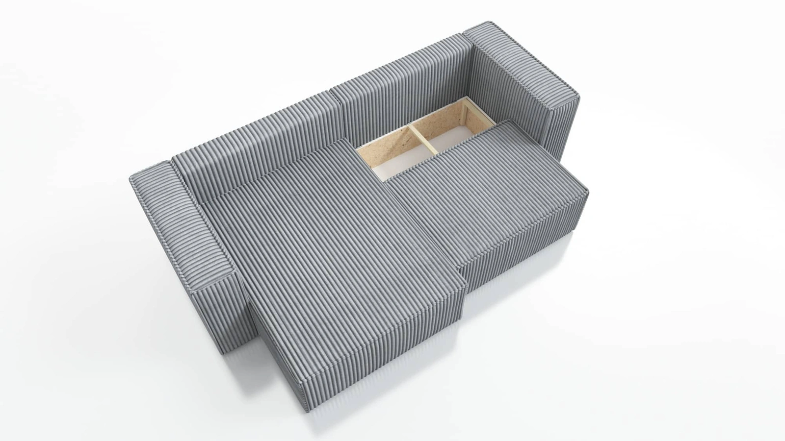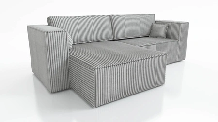 Narożnik z funkcją spania Otton szary uniwersalny stylowy narożnik sztruksowa tkanina eleganckie wykończenie krawędzi mebla