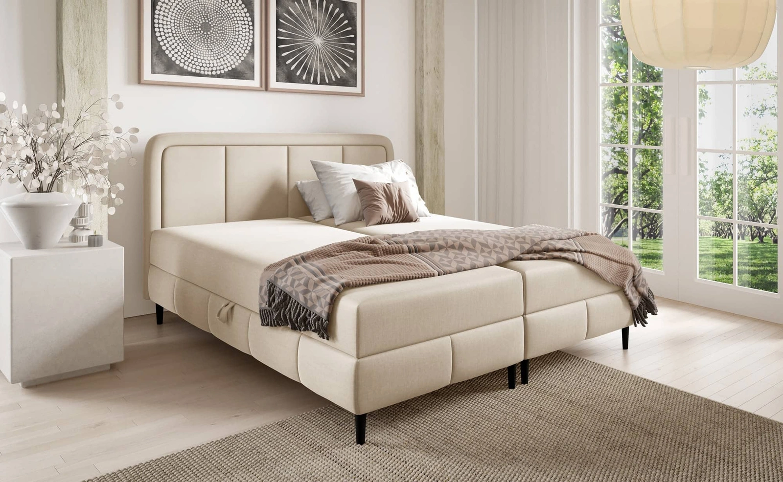Dla większej funkcjonalności łóżko kontynentalne jest wyposażone w dwa pojemniki, które umożliwią wygodne przechowywanie niezbędnych akcesoriów. Dostęp do pojemników łóżka jest możliwy po podniesieniu materaca. Niezawodne automaty na sprężynach wspomagające podnoszenie ułatwią tę czynność.