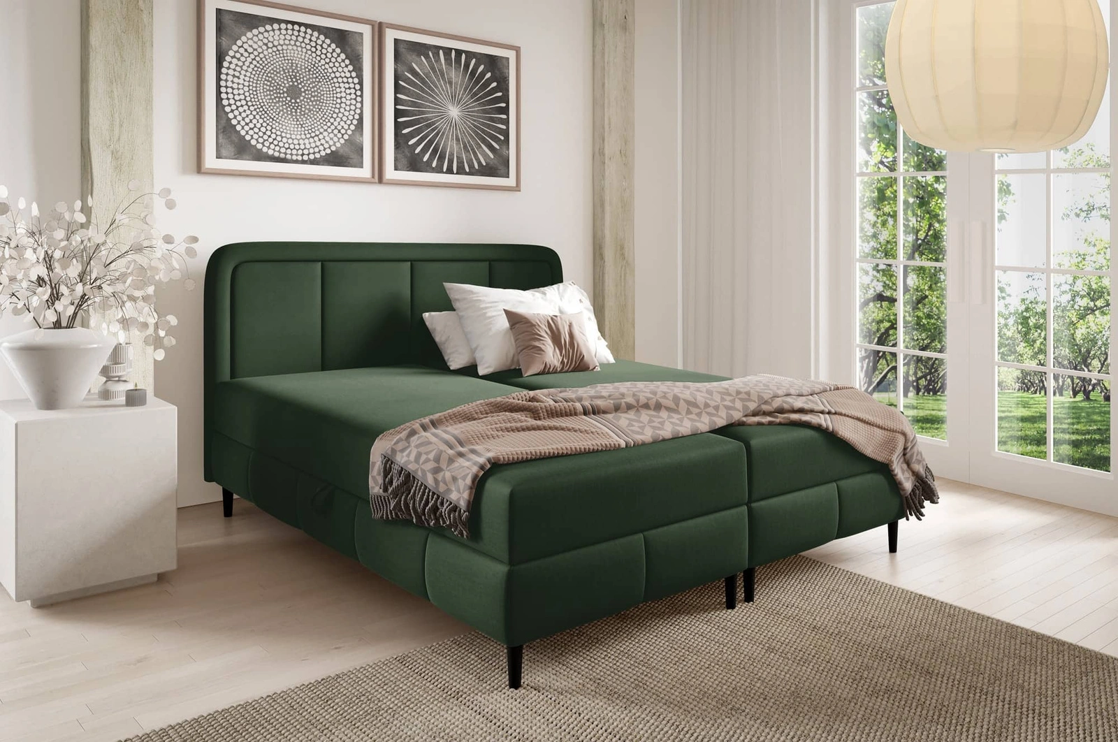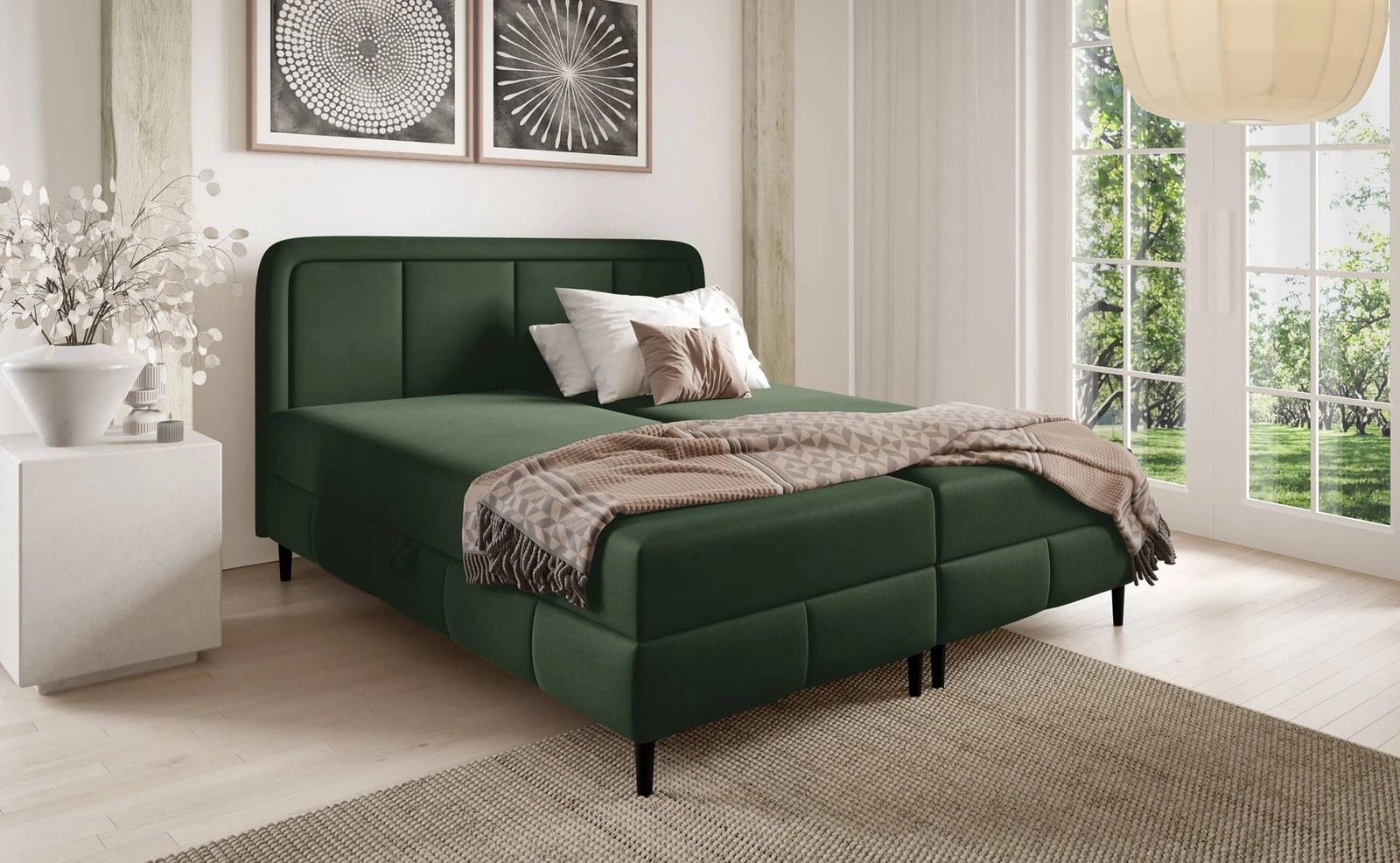 Łóżko kontynentalne Monte 140x200 zielone designerskie łóżko z pojemnikami na pościel doskonałe do sypialni i pokoju młodzieżowego