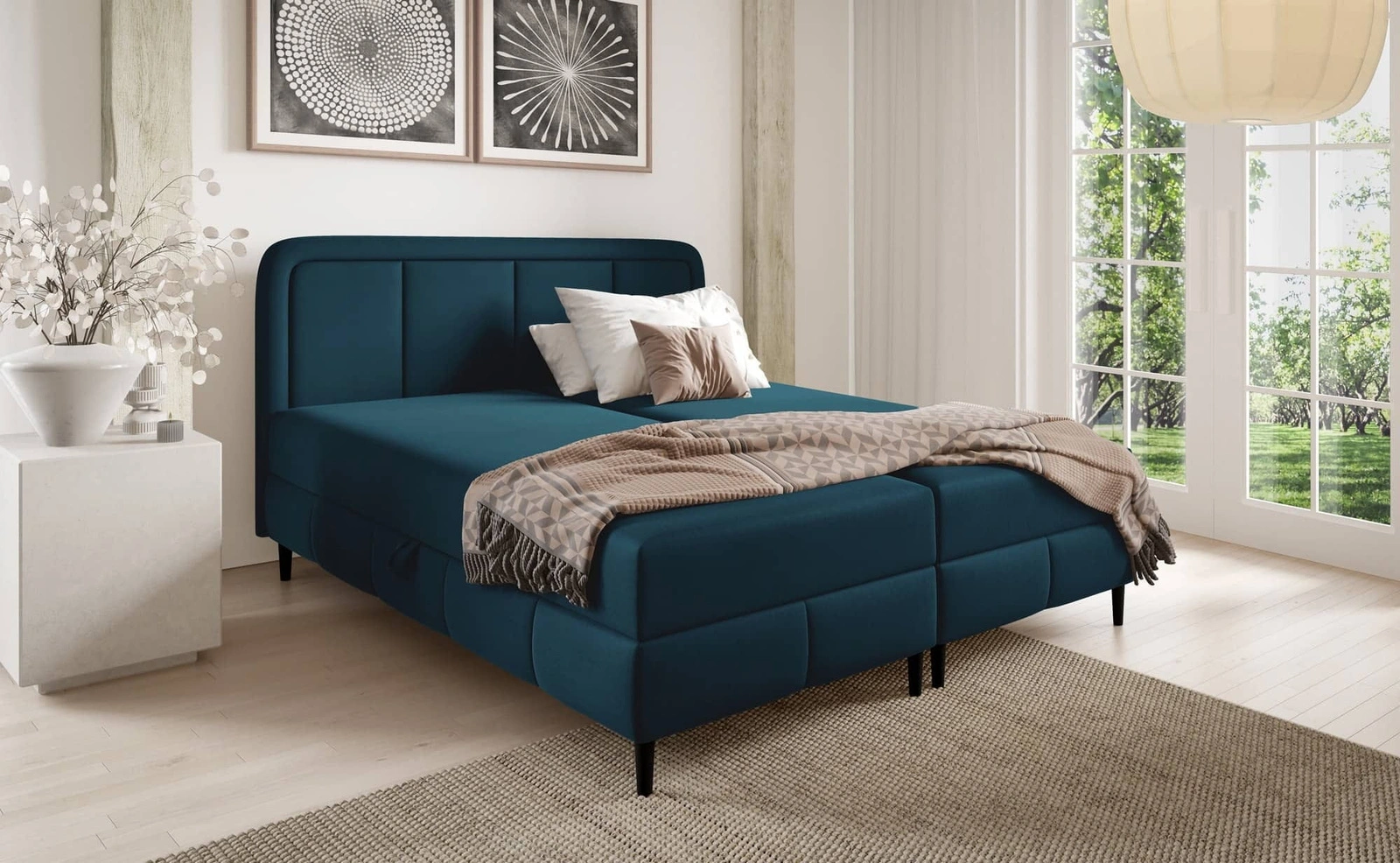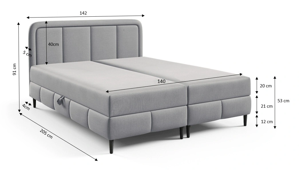 Dla większej funkcjonalności łóżko kontynentalne jest wyposażone w dwa pojemniki, które umożliwią wygodne przechowywanie niezbędnych akcesoriów. Dostęp do pojemników łóżka jest możliwy po podniesieniu materaca. Niezawodne automaty na sprężynach wspomagające podnoszenie ułatwią tę czynność.