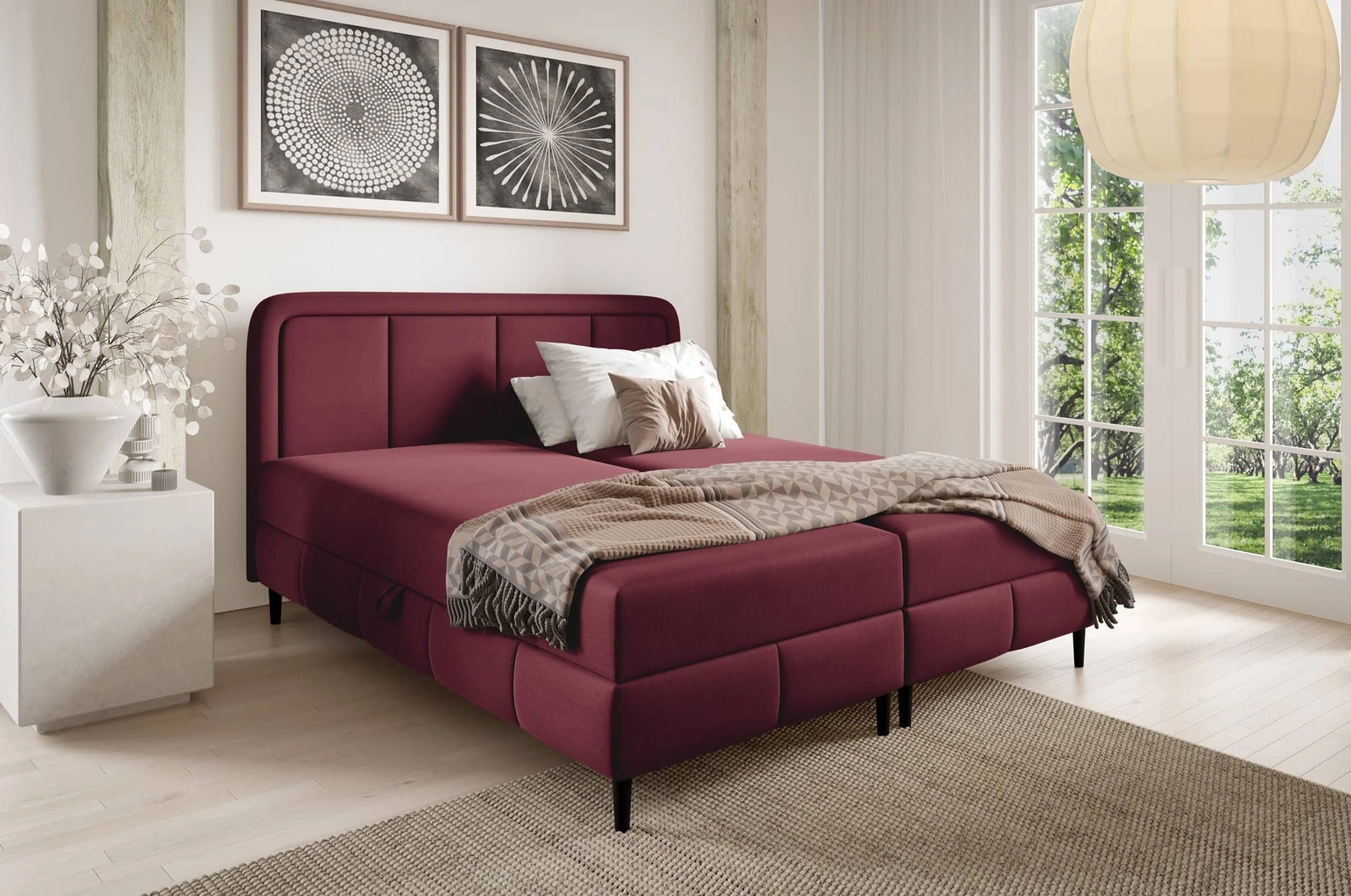 Łóżko kontynentalne Monte 160x200 w kolorze bordowym to idealny wybór do każdej sypialni lub pokoju młodzieżowego.