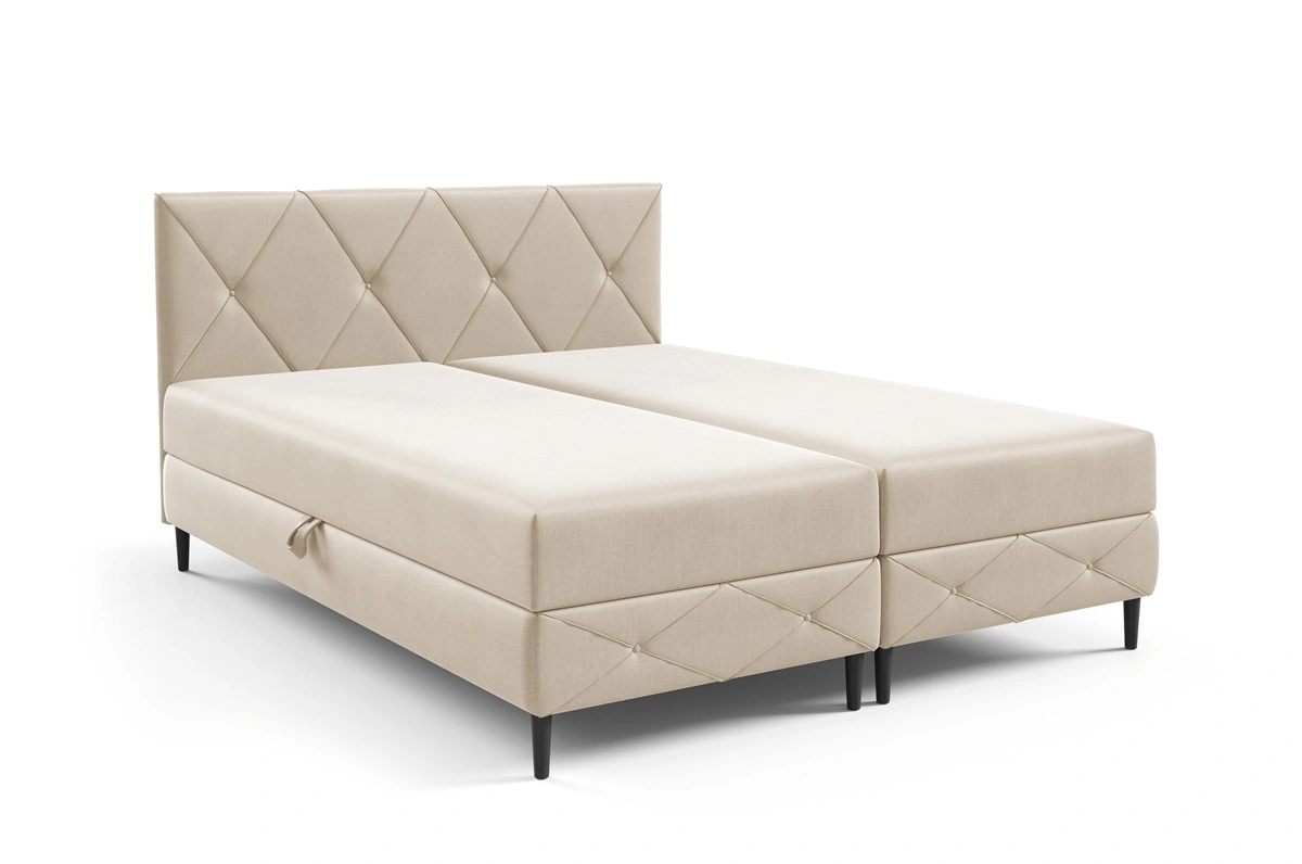 Łóżko kontynentalne Noren 200x200 w kolorze kremowym to idealny wybór do każdej sypialni lub pokoju młodzieżowego.