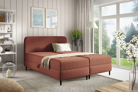 Łóżko kontynentalne Aberg 140x200 ceglaste nowoczesny minimalizm stylowe łózko do sypialni wysoki zagłówek o zaokrąglonych rogach